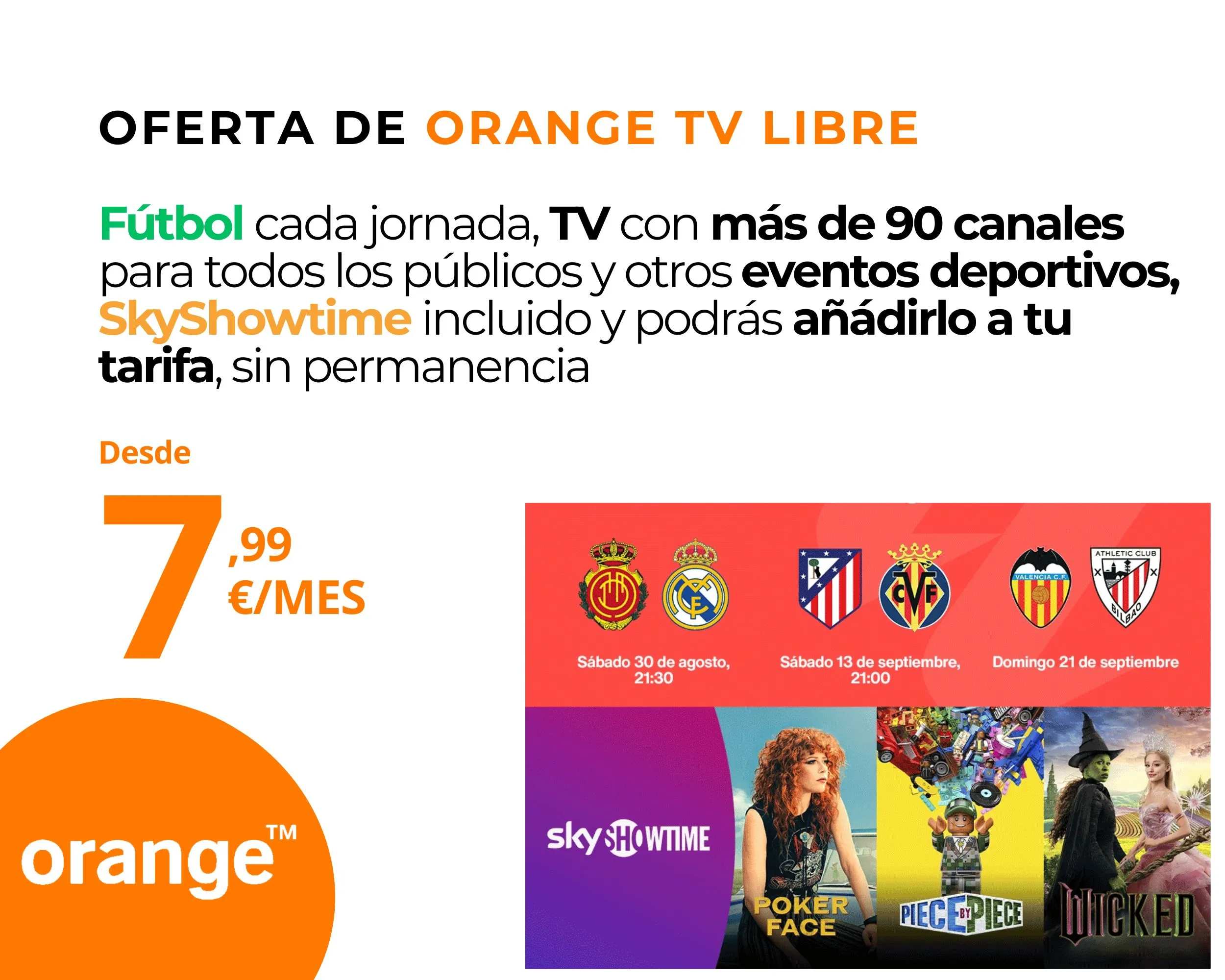Llama gratis 900 815 820 Orange TV LibreTerminales y dispositivos,Orange¡Lo quiero! Orange iPhone 17 256 GB con 5GTerminales y dispositivos,Orange¡Lo quiero! Orange iPhone 16 128 GB con 5GTerminales y dispositivos,Orange¡Lo quiero! Orange Fibra y Móvil + Fútbol y Cine con 2 líneasTarifas Fibra y Móvil¡Lo quiero! Orange iPhone 17 Pro 256 GB con 5GTerminales y dispositivos,Orange¡Lo quiero! Orange iPhone 16e 128 GB con 5GTerminales y dispositivos,Orange¡Lo quiero! Orange Samsung Galaxy S25 Ultra 5G 512 GBTerminales y dispositivos,Orange¡Lo quiero! Orange Xiaomi Redmi 14C 128GBTerminales y dispositivos,Orange¡Lo quiero! Orange Fibra 600 Mb + línea móvil con llamadas ilimitadas y 60 GB a máxima velocidad 5G+Tarifas Fibra y Móvil,Orange¡Lo quiero! Orange Tarifa Fibra 600 Mb y TVOrange,Tarifa Fibra + TV¡Lo quiero! Orange Tarifa MóvilTarifas Móvil,Orange¡Lo quiero! Llama gratis 900 815 820