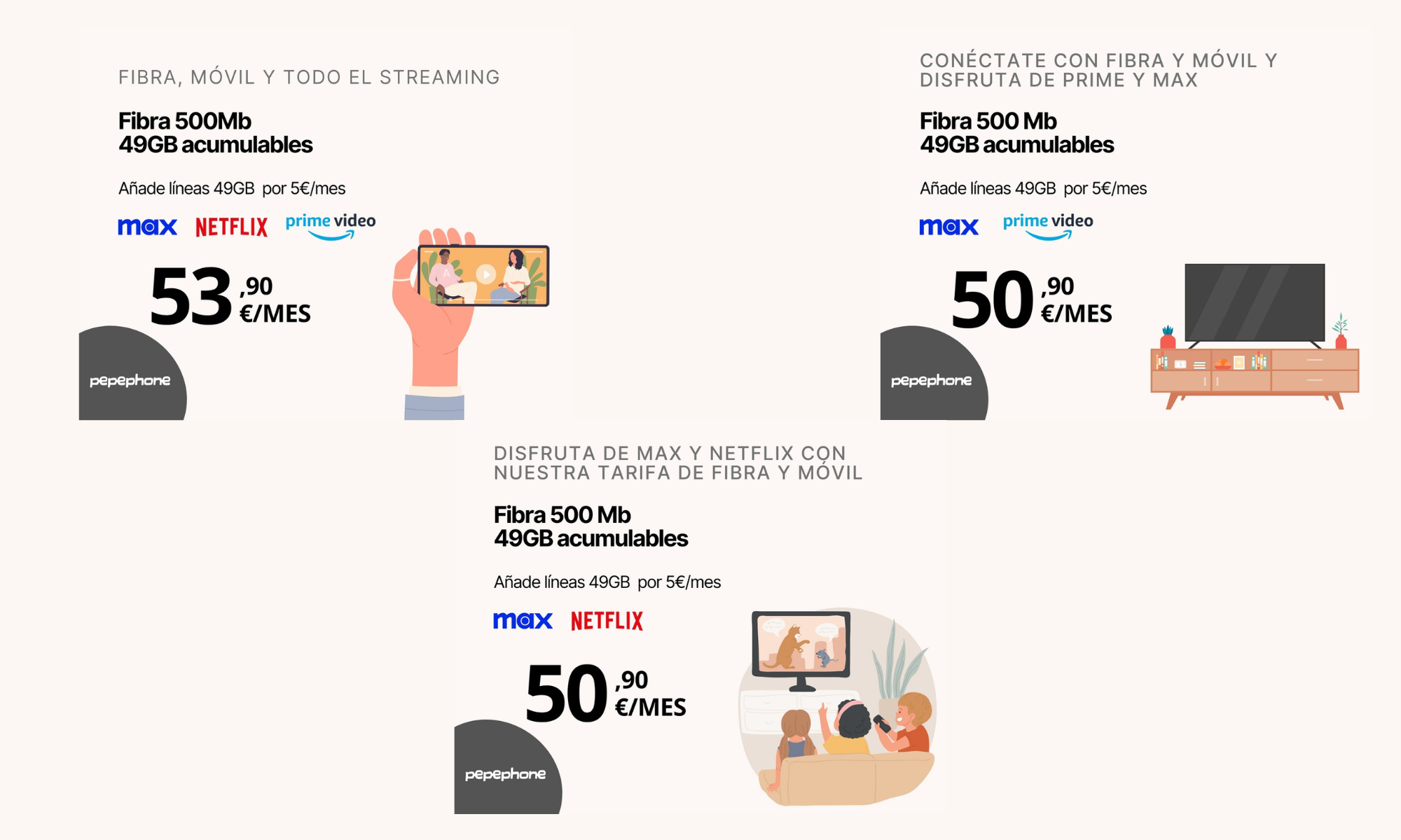 Ofertas tarifas,TV Streaming,Fibra,Pepephone