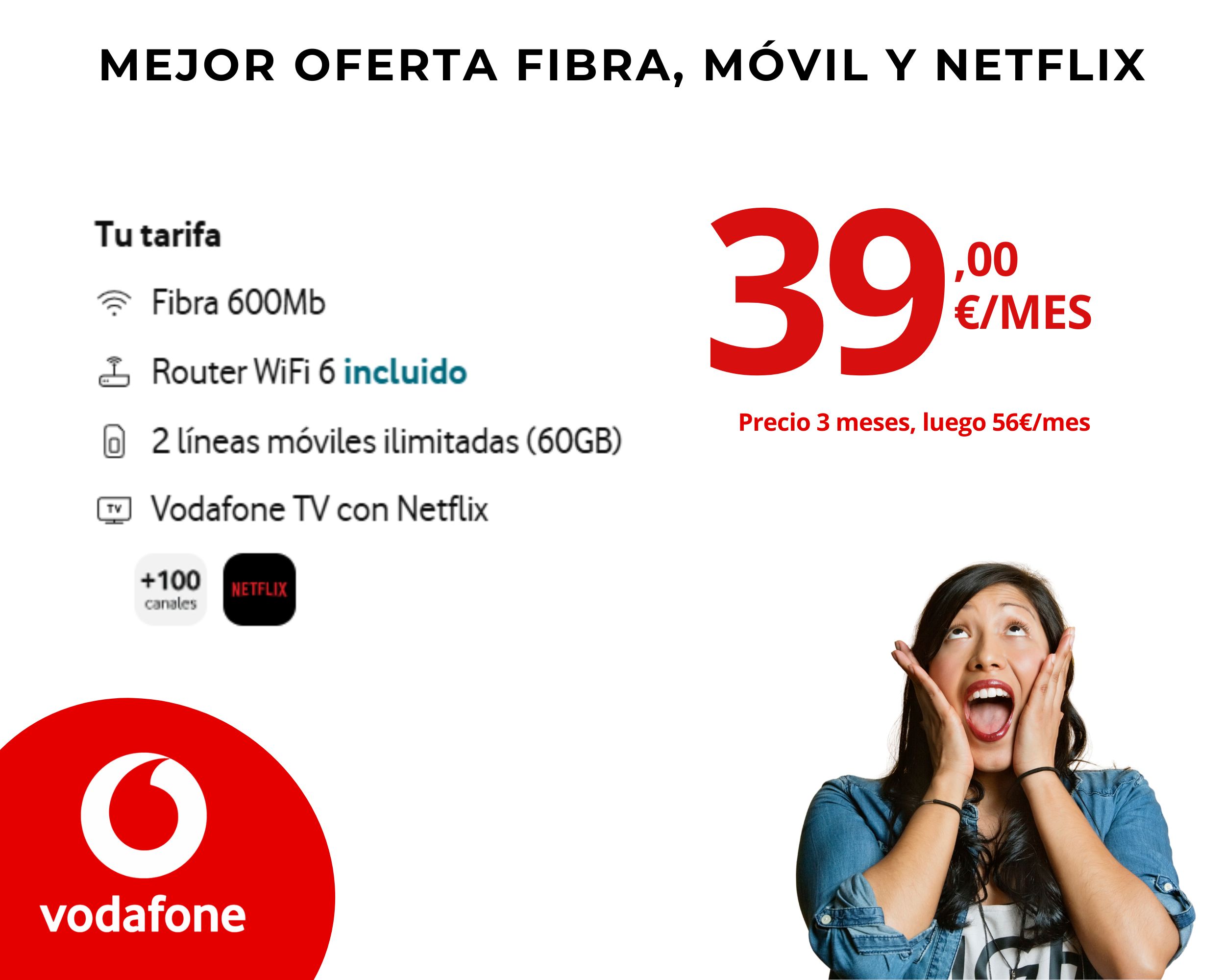 📞 TE LLAMAMOS Vodafone oferta fibra, móvil y NetflixVodafone,Tarifa Fibra y Móvil + TV¡Lo quiero! Vodafone Móvil 30GBVodafone,Tarifas Móvil¡Lo quiero! Vodafone Fibra + 2 líneas datos ilimitados y TV -La más vendidaVodafone,Tarifas Fibra y Móvil¡Lo quiero! Vodafone Fibra 1Gb — Oferta webVodafone,Fibra¡Lo quiero! Vodafone Fibra 600Mb + 2 líneas móviles 25GBVodafone,Tarifas Fibra y Móvil¡Lo quiero! Vodafone Tarifa móvil con datos ilimitados 5GVodafone,Tarifas Móvil¡Lo quiero! 📞 TE LLAMAMOS